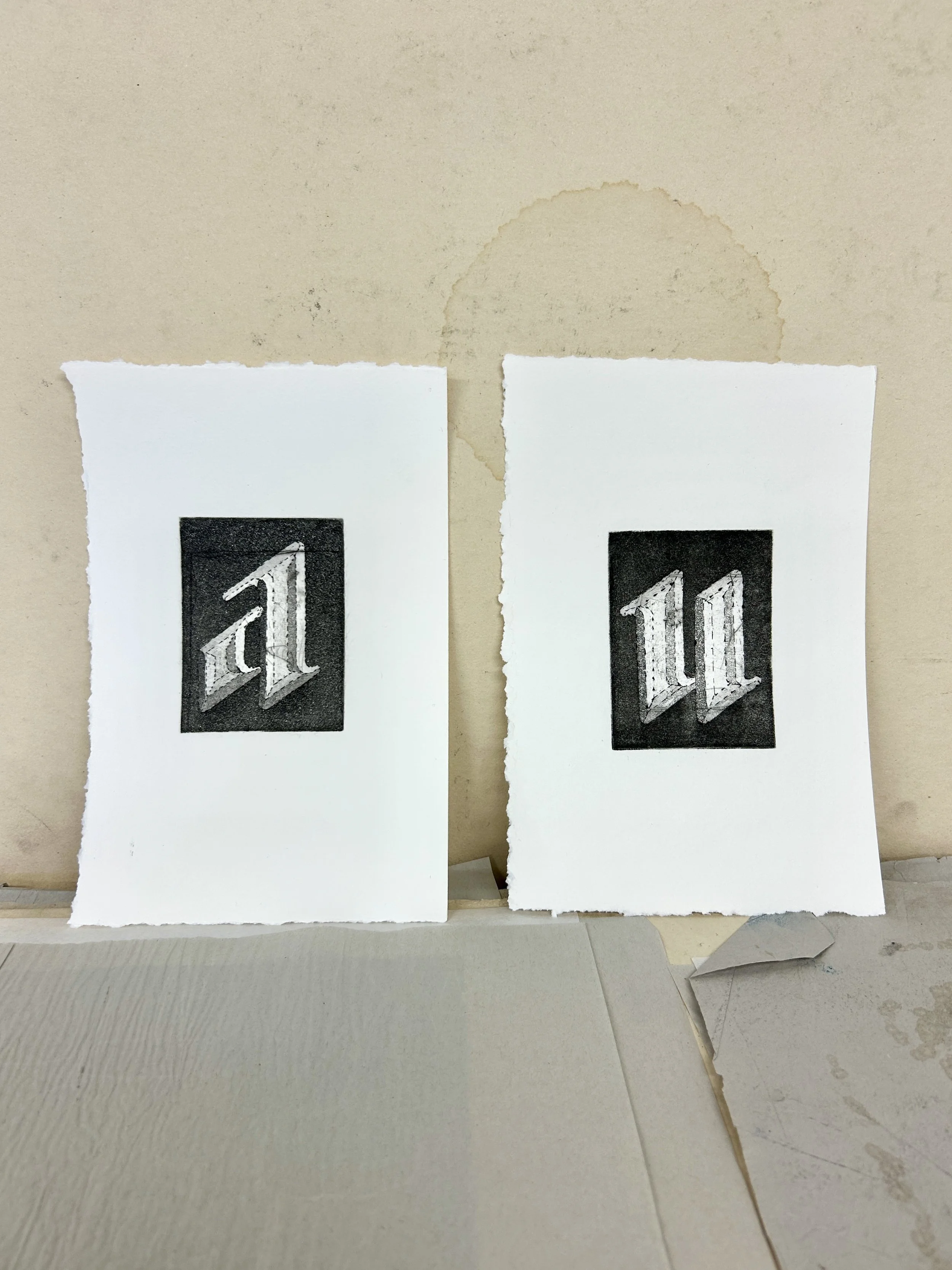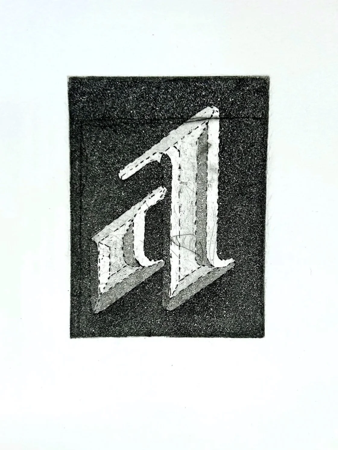 Fraktur Tinta ist ein unabgeschlossenes Typedesign Projekt. Der Font hat eine Modulare Basis, die im Laufe der Entwicklung für bessere Unterscheidbarkeit der Buchstaben aufgebrochen wurde. Als experimentelle Anwendung wurden einzelne Buchstaben mit einem digitalen 3D Effekt versehen, welcher dann als Aqua Tinta im Tiefdruck reproduziert wurde.